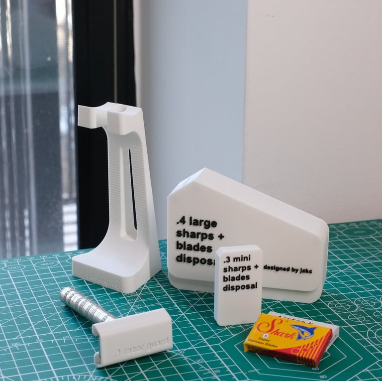 From travel guards to blade disposal and a vertical stand, each piece is designed to work together as a cohesive system — without adding bulk or visual noise to your bathroom.